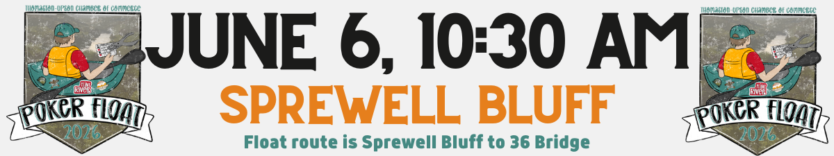 Each year, the T-U Chamber of Commerce hosts the Flint River Poker Float. Grab your kayak or canoe and meet us at Sprewell Bluff Park. You will sign in to get your ticket pack. Before putting in the river, you will draw your first poker card and have the ticket pack punched out. Once on the river, there will be 3 stops between Sprewell Bluff and the 36 Bridge to draw cards. Win a brand new kayak, cash prize, or door prizes!