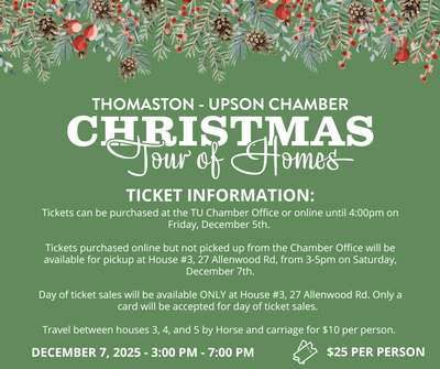 Tickets can be purchased day of event ONLY at house #3, 27 Allenwood Rd. Payment option will be credit/debit card only. Tickets purchased online but not picked up at the Chamber Office can be picked up day of event from 3-7pm at house #3 ONLY. Please message the Chamber Facebook Page for any questions.